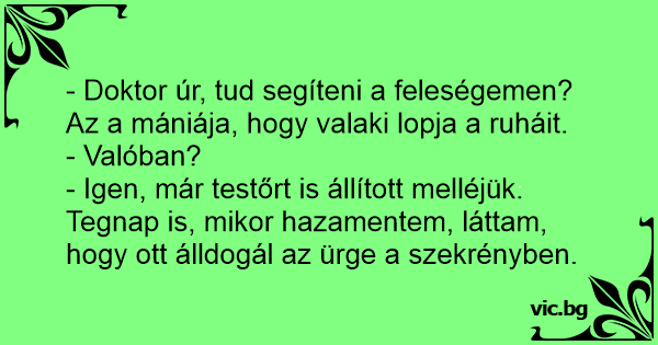 - Doktor úr, tud segíteni a feleségemen? Az a mániája, hogy valaki lopja a ruháit.