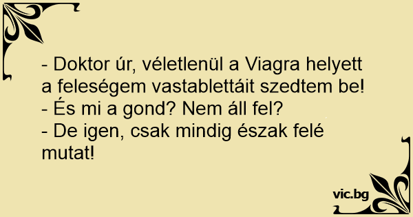 - Doktor úr, véletlenül a Viаgrа helyett a feleségem vastablettáit szedtem be!