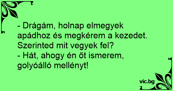 - Drágám, holnap elmegyek apádhoz és megkérem a kezedet. Szerinted mit vegyek fel?
