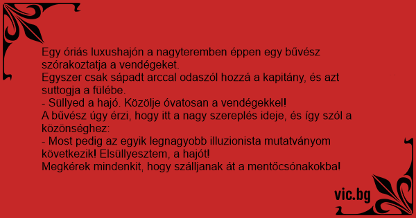 - Süllyed a hajó. Közölje óvatosan a vendégekkel!