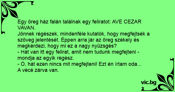 Egy öreg ház falán találnak egy feliratot: AVE CEZAR VAVAN.