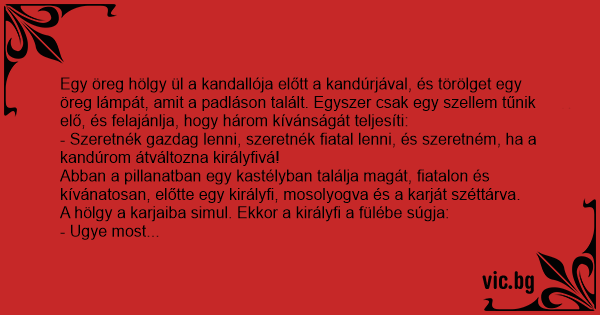 - Szeretnék gazdag lenni, szeretnék fiatal lenni, és szeretném, ha a kandúrom átváltozna királyfivá!