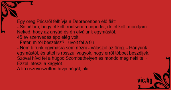 Egy öreg Pécsről felhívja a Debrecenben élő fiát: