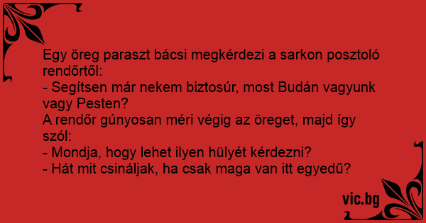 Egy öreg paraszt bácsi megkérdezi a sarkon posztoló rendőrtől: