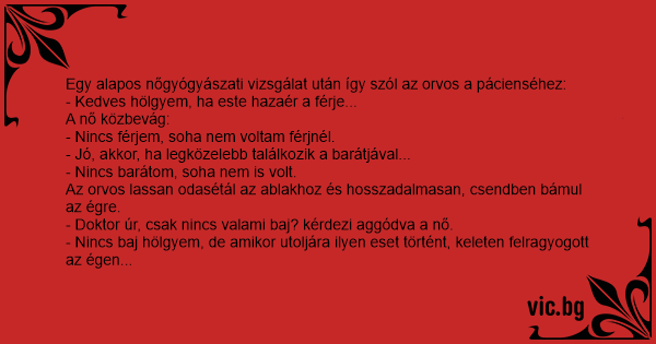Egy alapos nőgyógyászati vizsgálat után így szól az orvos a pácienséhez: