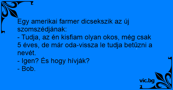 - Tudja, az én kisfiam olyan okos, még csak 5 éves, de már oda-vissza le tudja betűzni a nevét.
