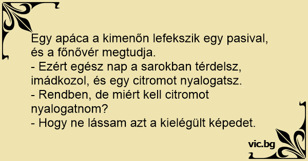 - Ezért egész nap a sarokban térdelsz, imádkozol, és egy citromot nyalogatsz.