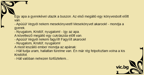 - Hát tudja uram, hallatlan türelme van. Én már rég felpofoztam volna a kis Kristófot.