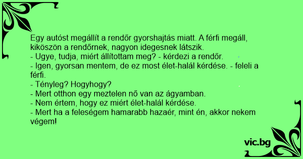- Ugye, tudja, miért állítottam meg? - kérdezi a rendőr.