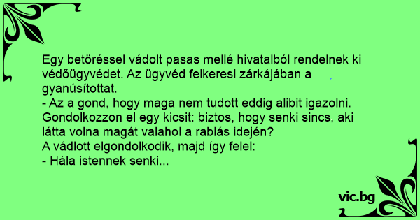 Egy betöréssel vádolt pasas mellé hivatalból rendelnek ki védőügyvédet. Az ügyvéd felkeresi zárkájában a gyanúsítottat.