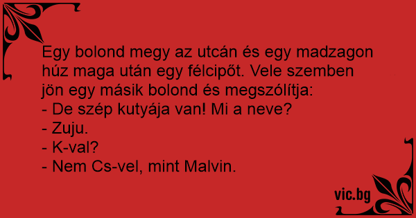 Egy bolond megy az utcán és egy madzagon húz maga után egy félcipőt. Vele szemben jön egy másik bolond és megszólítja: