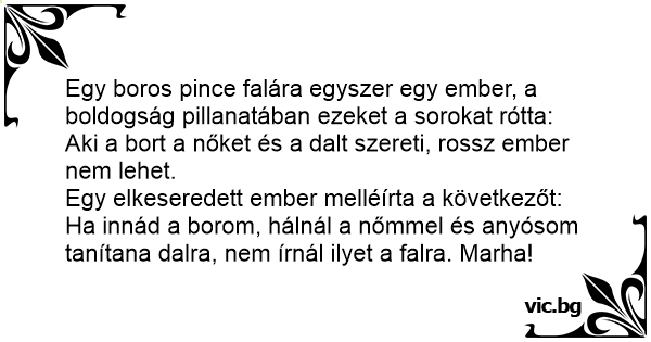 Egy boros pince falára egyszer egy ember, a boldogság pillanatában ezeket a sorokat rótta: