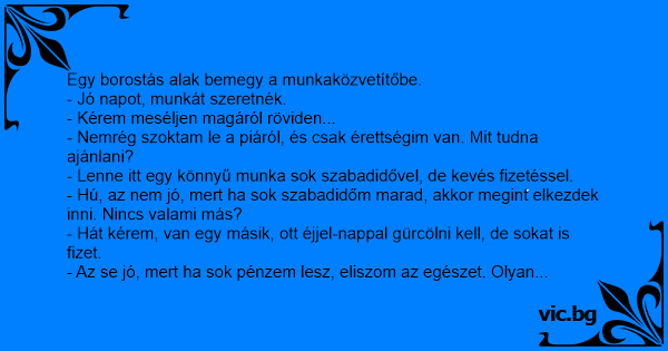 Egy borostás alak bemegy a munkaközvetítőbe.