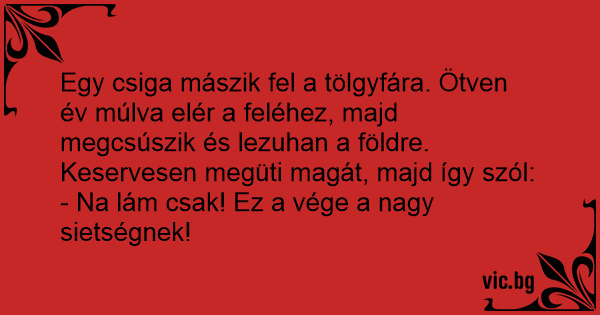 Egy csiga mászik fel a tölgyfára. Ötven év múlva elér a feléhez, majd megcsúszik és lezuhan a földre. Keservesen megüti magát, majd így szól:
