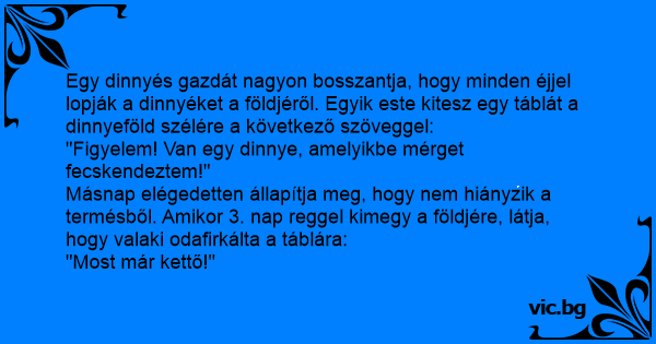 На село, от полето на един селянин започнали да изчезват дините. Той се сетил и сложил табела: