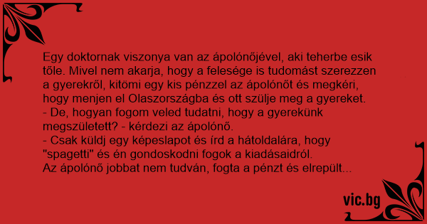 - Csak várj, míg hazaérek és azonnal elmagyarázom - mondja a doki.