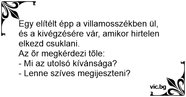 Egy elítélt épp a villamosszékben ül, és a kivégzésére vár, amikor hirtelen elkezd csuklani.
