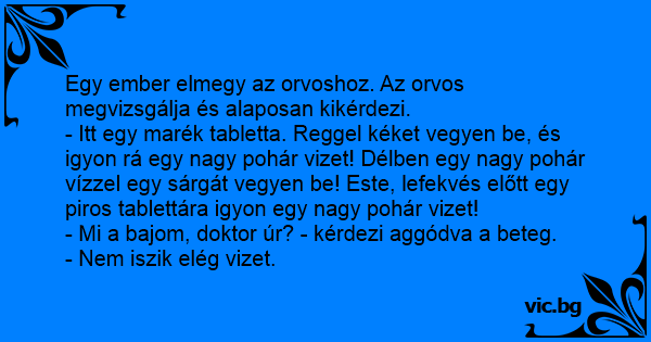 Egy ember elmegy az orvoshoz. Az orvos megvizsgálja és alaposan kikérdezi.