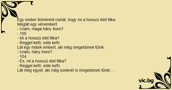 Egy ember felmérést csinál, hogy mi a hosszú élet titka.