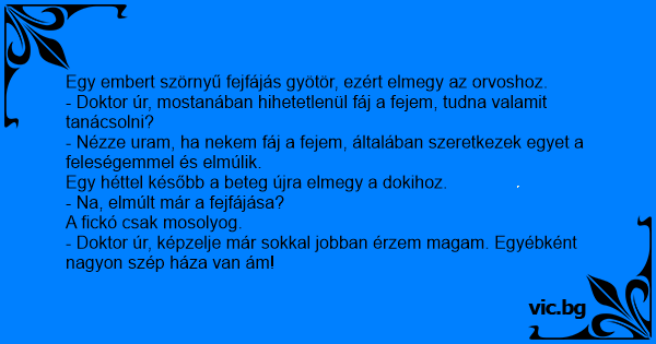 - Doktor úr, mostanában hihetetlenül fáj a fejem, tudna valamit tanácsolni?
