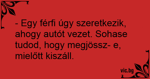- Egy férfi úgy szeretkezik, ahogy autót vezet. Sohase tudod, hogy megjössz- e, mielőtt kiszáll.