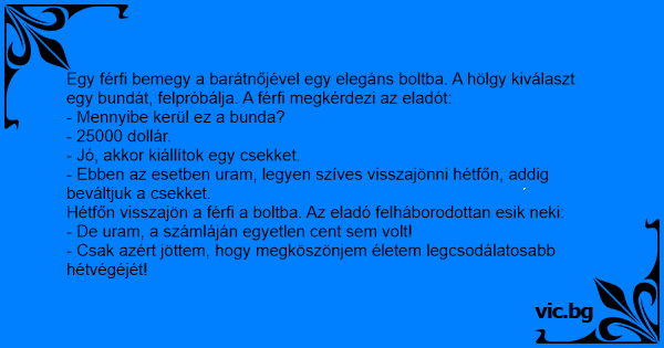 Hétfőn visszajön a férfi a boltba. Az eladó felháborodottan esik neki: