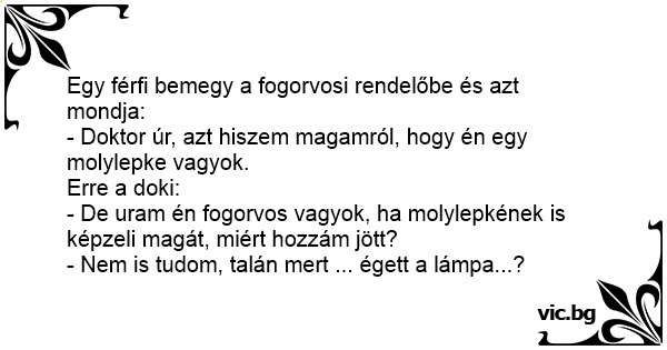 - De uram én fogorvos vagyok, ha molylepkének is képzeli magát, miért hozzám jött?