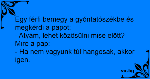 Egy férfi bemegy a gyóntatószékbe és megkérdi a papot: