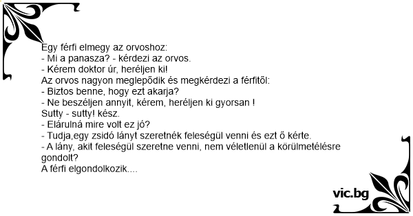 - Tudja,egy zsidó lányt szeretnék feleségül venni és ezt ő kérte.