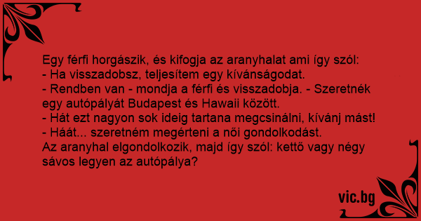 - Rendben van - mondja a férfi és visszadobja. - Szeretnék egy autópályát Budapest és Hawaii között.