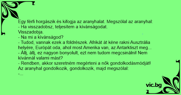 Az aranyhal gondolkozik, gondolkozik, majd megszólal: