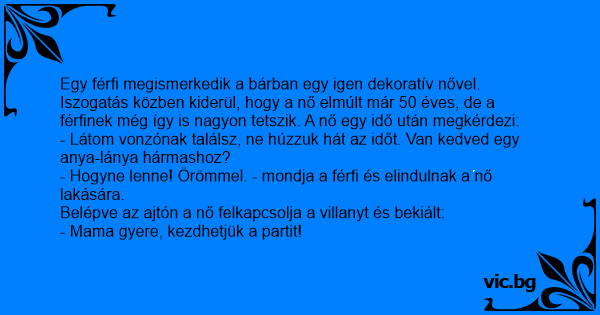 - Látom vonzónak találsz, ne húzzuk hát az időt. Van kedved egy anya-lánya hármashoz?