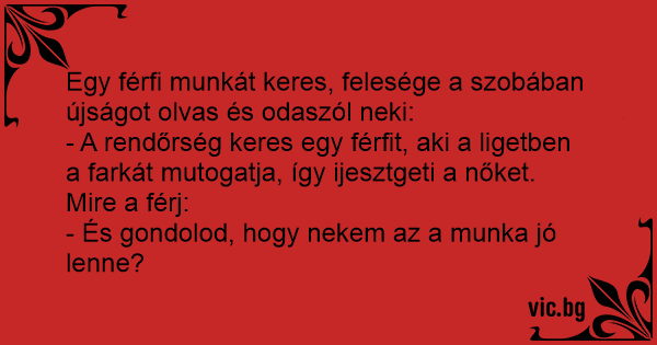 Egy férfi munkát keres, felesége a szobában újságot olvas és odaszól neki: