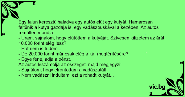 - Uram, sajnálom, hogy elütöttem a kutyáját. Szívesen kifizetem az árát. 10.000 forint elég lesz?