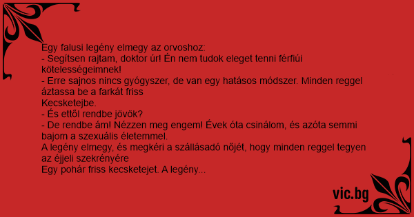 - Segítsen rajtam, doktor úr! Én nem tudok eleget tenni férfiúi kötelességeimnek!