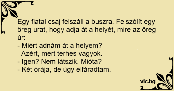 Egy fiatal csaj felszáll a buszra. Felszólít egy öreg urat, hogy adja át a helyét, mire az öreg úr: