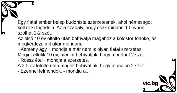 - Kemény ágy. - mondja a már nem is olyan fiatal szerzetes.