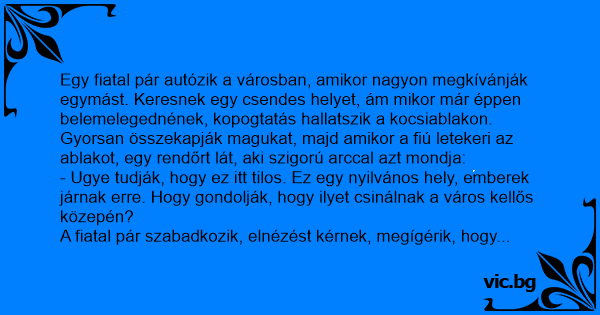 - Ugye tudják, hogy ez itt tilos. Ez egy nyilvános hely, emberek járnak erre. Hogy gondolják, hogy ilyet csinálnak a város kellős közepén?