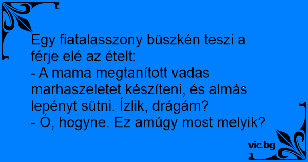 - A mama megtanított vadas marhaszeletet készíteni, és almás lepényt sütni. Ízlik, drágám?