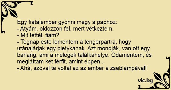 - Tegnap este lementem a tengerpartra, hogy utánajárjak egy pletykának. Azt mondják, van ott egy barlang, ami a melegek találkahelye. Odamentem, és megláttam két férfit, amint éppen...