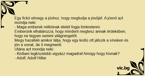 Egy fickó elmegy a jóshoz, hogy megtudja a jövőjét. A jósnő azt mondja neki:
