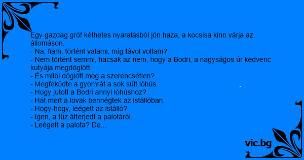 - Nem történt semmi, hacsak az nem, hogy a Bodri, a nagyságos úr kedvenc kutyája megdöglött.