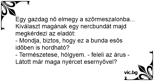 - Természetese, hölgyem. - feleli az árus - Látott már maga nyércet esernyővel?