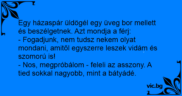 - Fogadjunk, nem tudsz nekem olyat mondani, amitől egyszerre leszek vidám és szomorú is!