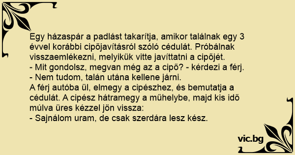 - Mit gondolsz, megvan még az a cipő? - kérdezi a férj.