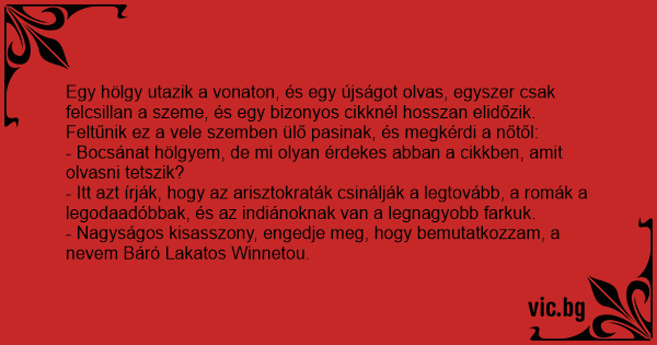 - Itt azt írják, hogy az arisztokraták csinálják a legtovább, a romák a legodaadóbbak, és az indiánoknak van a legnagyobb farkuk.
