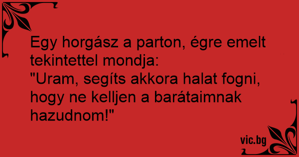 Egy horgász a parton, égre emelt tekintettel mondja: