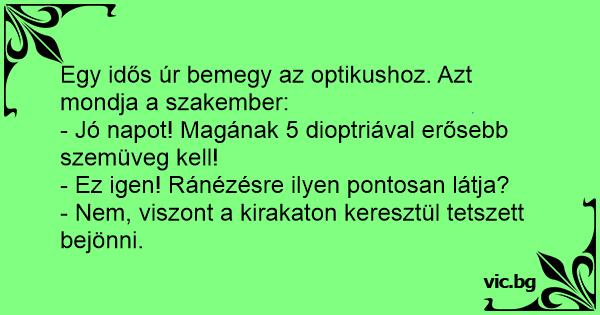 Egy idős úr bemegy az optikushoz. Azt mondja a szakember: