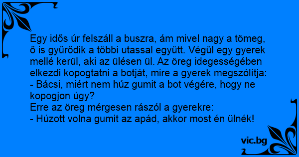 Erre az öreg mérgesen rászól a gyerekre: