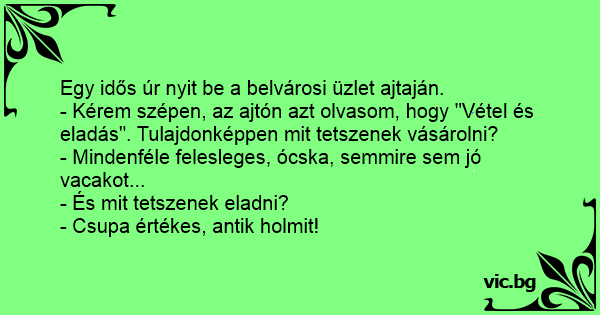- Kérem szépen, az ajtón azt olvasom, hogy "Vétel és eladás". Tulajdonképpen mit tetszenek vásárolni?